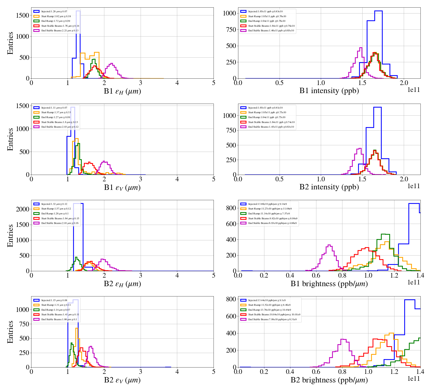 Beam properties summary