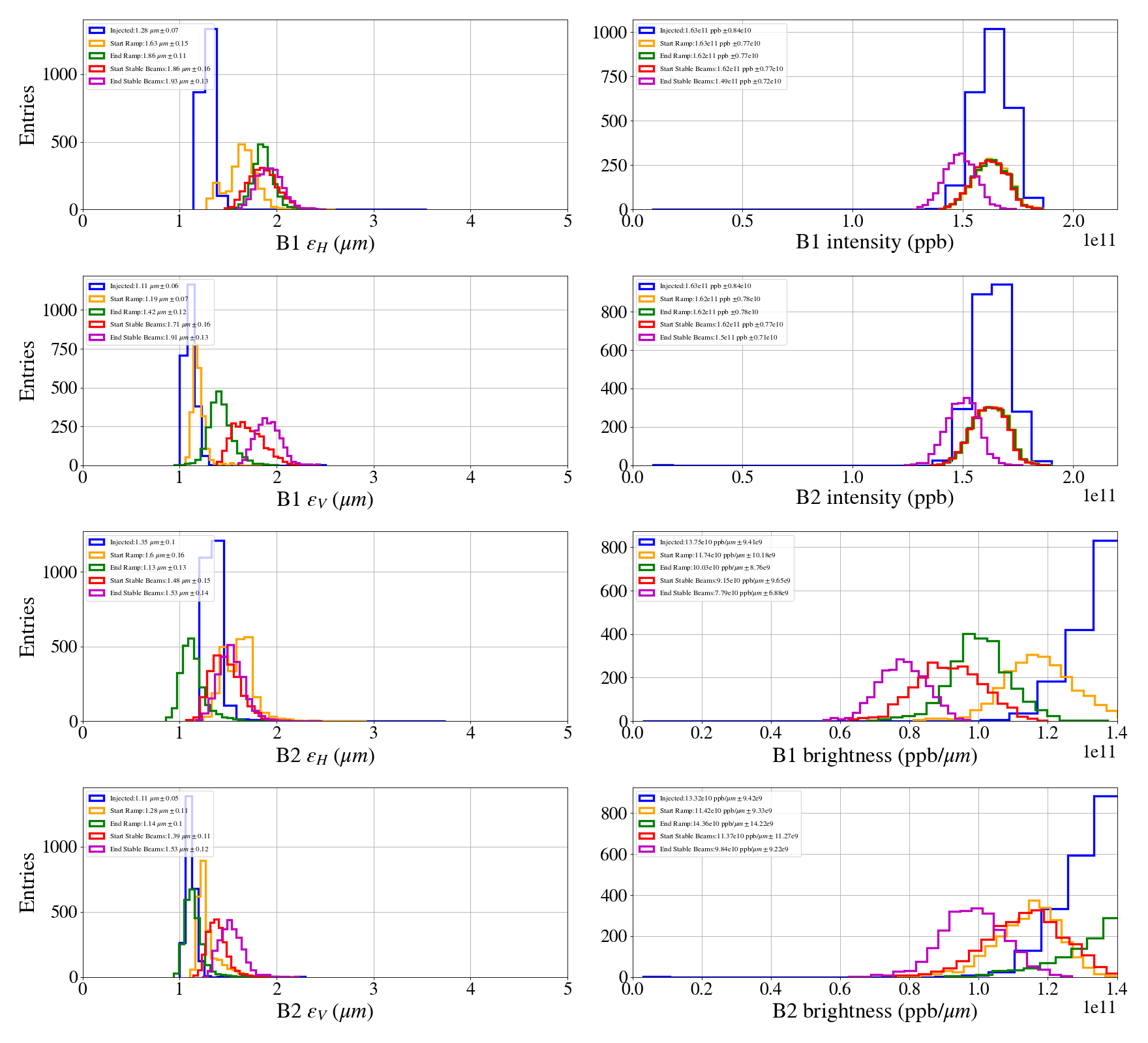 Beam properties summary