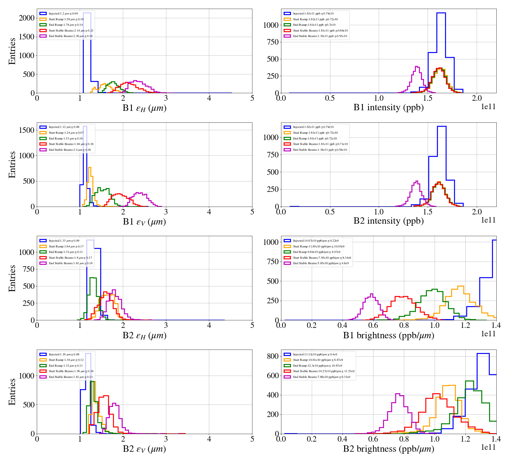 Beam properties summary
