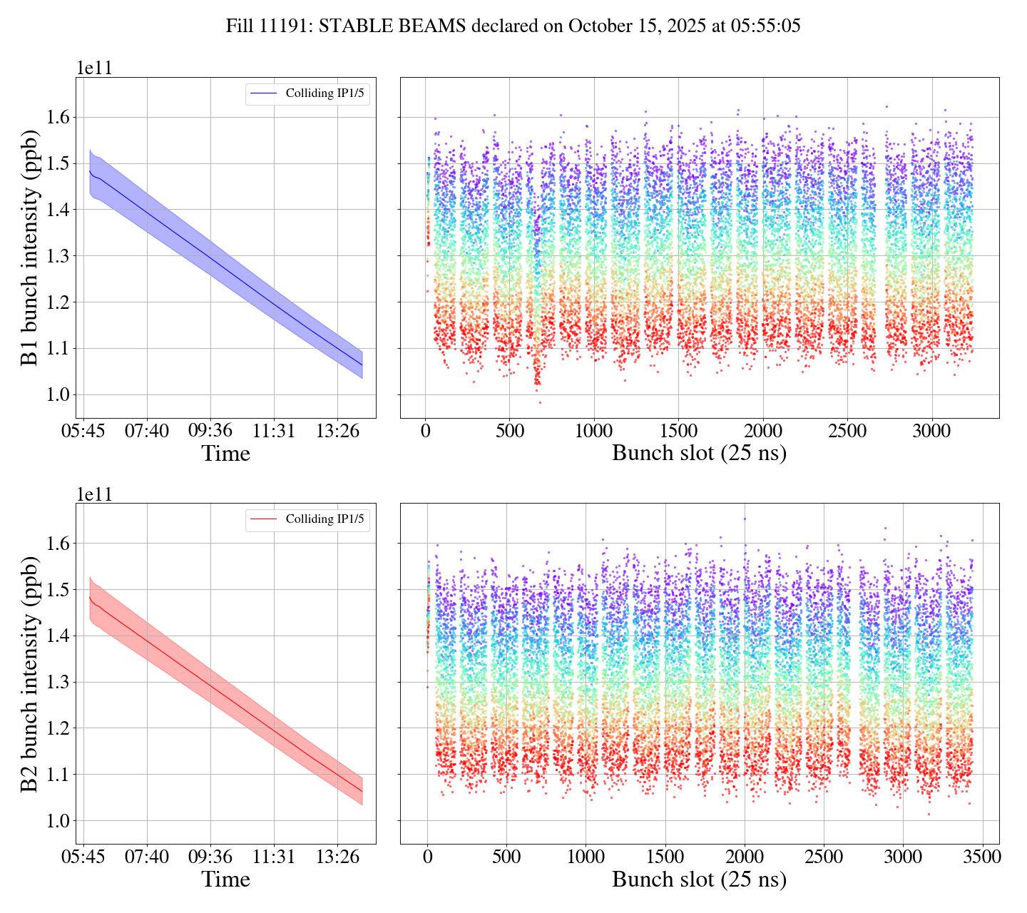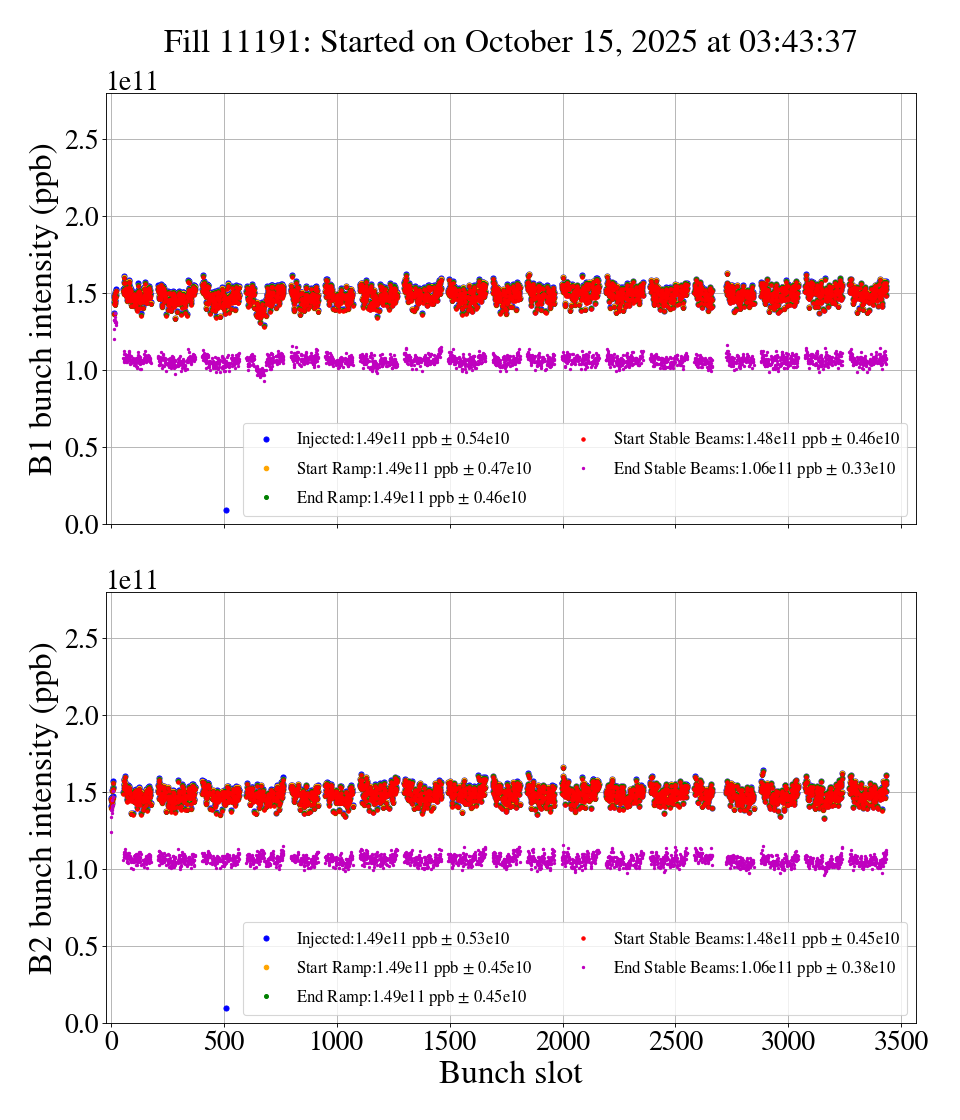 1.5e11 ppb injected in both beams