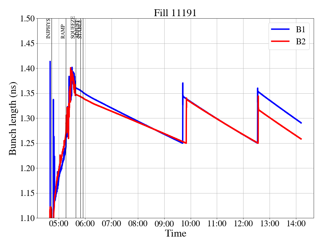 increased minimum bunch length at SB to 1.25ns