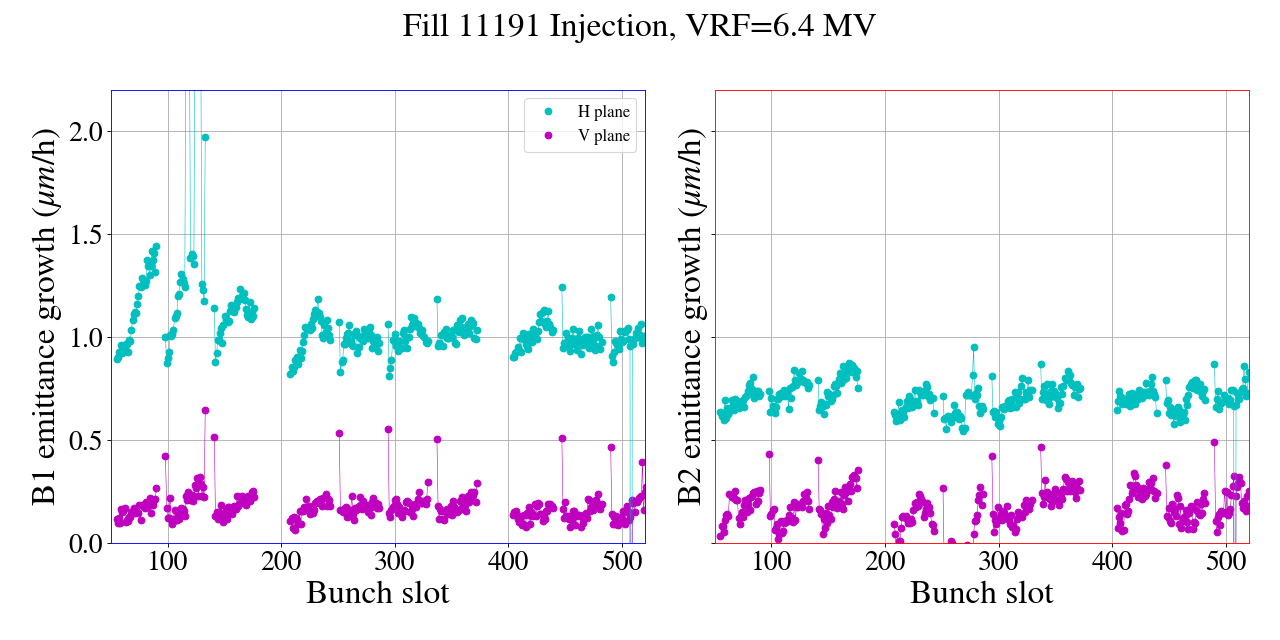 significant blowup at injection, increased octupoles