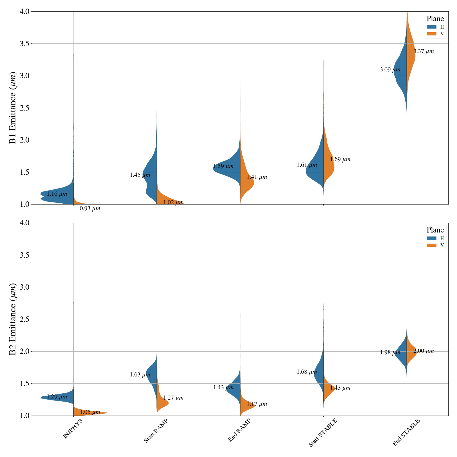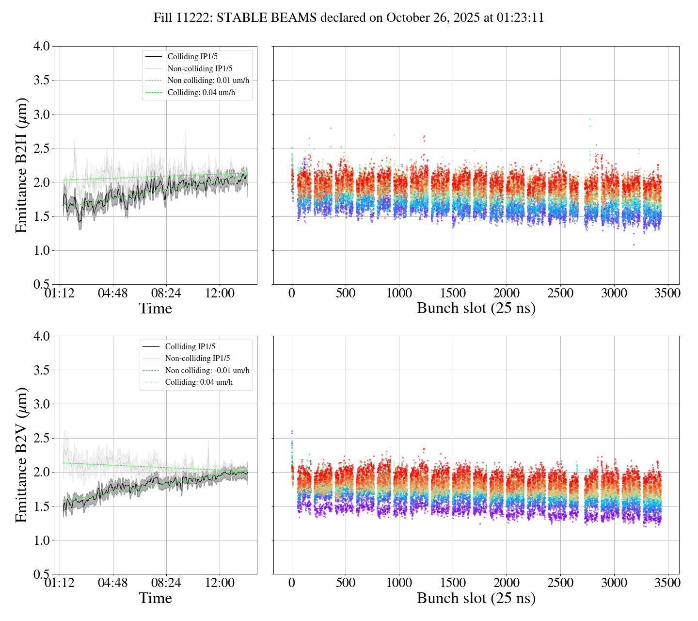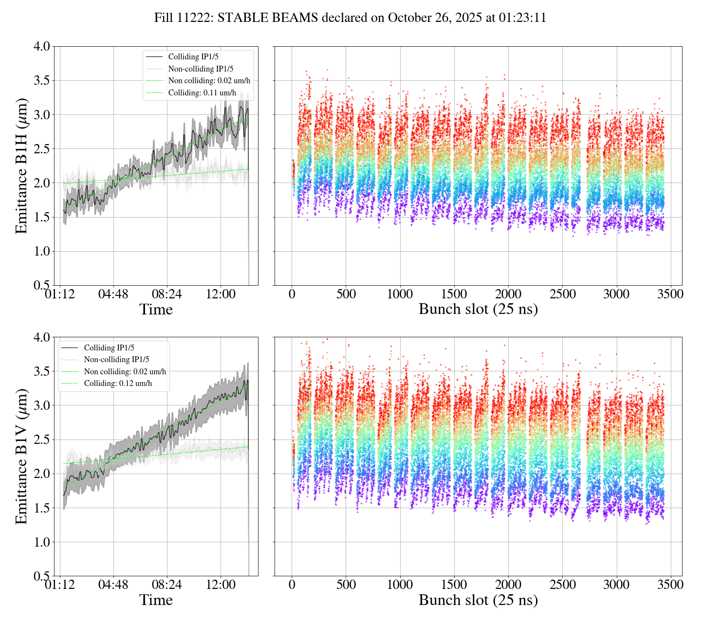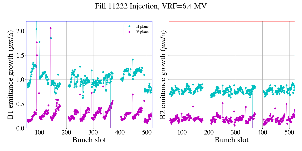 B1 0.11 0.12 um/h emittance growth at collisions